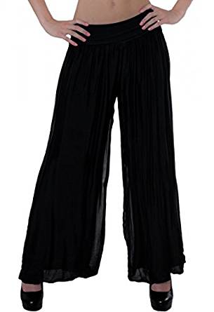 Ebenso leicht wie elegant kommt die Seidenhose von Caspar im Haremsstil daher. Die Aladinhose fällt durch ihr extraweit geschnittenes Bein auf. Locker umspielt 100% Seide den Körper und sorgt an warmen Tagen für luftig-leichten Tragekomfort. Die leichte Transparenz wirkt sexy, aber nicht zu aufdringlich: Ein Innenfutter aus Viskose mit Elasthan macht die Hose blickdicht. Der Lagenlook bringt Schwung ins Design. Der zart glänzende Oberstoff und die klassische schwarze Farbgebung machen die Damenhose zum idealen Beinkleid für gehobene Anlässe. Kombiniert mit einem edlen Top oder einer schönen Bluse kann sie sich auf vielen Veranstaltungen und Partys blicken lassen. Der bequeme Stretchbund dehnt sich und macht viele Bewegungen mit. In Einheitsgröße passt die Seidenhose den Konfektionsgrößen S, M, L und XL. Auch in anderen Farben erhältlich.