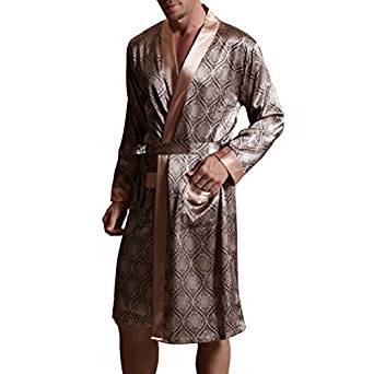 Amybria Herren Seidenbademantel in Braun