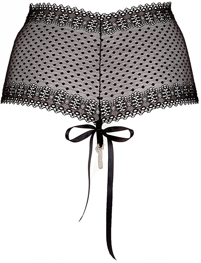 Das Original: Ein Perlenstring aus dem Hause BRACLI verführte schon Samantha aus der Kult-Serie „Sex and the City“. Das Modell BRACLI&G kommt im aufregenden Boudoir-Stil daher. Das Maxi-Höschen reicht bis an die Taille und besteht aus einem zarten, fein transparenten Stoff mit einem dekorativen Muster. Die Bündchen sind mit aufwendig gearbeiteter Spitze besetzt. Zwischen den Beinen verläuft die berühmte Perlenkette, die farblich genau aufs Höschen abgestimmt ist. Die Reizwäsche präsentiert sich nicht nur außerordentlich erotisch, sie sitzt auch noch bequem. Dafür sorgt die elastische Spitze, die dem Slip die optimale Passform für die Größen 36 bis 40 verleiht. Die Perlen werden in Manacor auf Mallorca von Hand gearbeitet und sind von echten Perlen kaum zu unterscheiden. In Natur und Schwarz erhältlich. Das Muster der Spitze ist individuell und kann von der Abbildung abweichen.