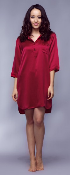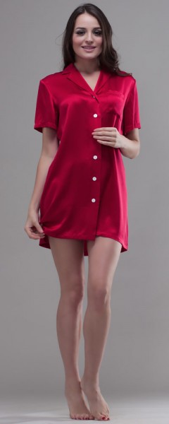 Träumen Sie in purer Eleganz mit unserem kurzen Nachthemd aus feinster Seide in verführerischem Weinrot....