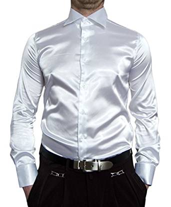 Ein glänzender Auftritt gelingt Ihnen mit dem Designer Hemd in Weiß. Die glänzende Baumwollmischung erinnert optisch an feine Seide und schafft ein faszinierend changierendes Farbenspiel. Der modische New Kent-Tragen bildet den pfiffigen Abschluss des Herrenhemds. Das Langarmhemd sieht aber nicht nur gut aus, es überzeugt auch durch seine bequeme, anschmiegsame Passform. Der gerade Schnitt passt sich jedem Körperbau hervorragend an, ganz egal, ob Sie Hemden in Größe M oder XXL benötigen. Das Hemd ist lang geschnitten und eignet sich damit auch für größere Herren. Der pflegeleichte Baumwollmix lässt sich einfach in der Maschine reinigen und ist noch dazu bügelfrei. Lästiges Hemdenbügeln können Sie sich also sparen. Kombinieren Sie das weiße Designer Hemd einfach zum schwarzen Anzug und Sie sind für jeden wichtigen Auftritt gut angezogen.