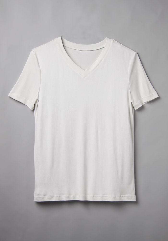 Die klassische Variante ist manchmal doch die Beste. Das beweist dieses hochwertige Herren Shirt aus reiner Frühlingsseide. Der Schnitt könnte traditioneller nicht sein: Körperbetont liegt das Unterhemd an, Der Hals wird von einem tiefen V-Ausschnitt eingerahmt. Die perfekte Passform macht das Shirt so attraktiv, dass Männer es nicht nur unter Hemden und Pullovern verstecken sollten. Im Sommer kann das T-Shirt durchaus einmal als Oberbekleidung getragen werden; als Kombination bieten sich klassische Jeans oder lässige Shorts an. Dann kommt auch das edle Material bestens zur Geltung, das bei diesem Herrenhemd in einem schönen Elfenbeinton schimmert. Die Frühlingsseide besitzt natürlich die Exportgüteklassa A und ist damit von bester Qualität. Herren können das Shirt in sechs verschiedenen Konfektionsgrößen bestellen und auch noch in Schwarz, falls sie eine passende Unterbekleidung für dunkle Hemden suchen. Unter eleganter Kleidung fällt das Unterhemd dann wegen seiner hervorragenden Passform und des größeren V-Ausschnittes gar nicht auf.