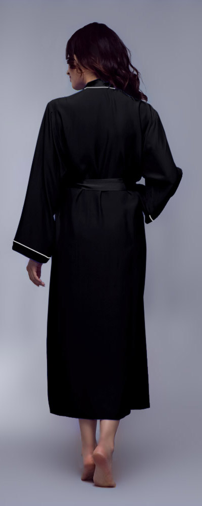 Es sind die kleinen Details, die diesen Seiden-Morgenmantel so unwiderstehlich machen. Am Rand des Kragens, der Ärmel und an den Taschen befindet sich jeweils ein hübsches, dünnes Seidenband, welches einen farbigen Kontrast zur Hauptfarbe des Mantels gibt. Geschlossen wird der Mantel durch ein Hüftband, das ebenfalls aus reiner Seide besteht. Damen haben die Auswahl aus vier klassischen Farben: Schwarz, Marineblau, Weinrot und Dunkelrot. Alle Morgenmäntel sind mit einer weißen Ziernaht besetzt. Zudem stehen sechs Konfektionsgrößen zur Verfügung, damit jede Frau diesen hübschen Bademantel aus Seide genießen kann.