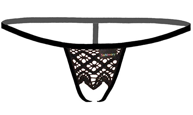Ein super-sexy Dessous, das kaum Haut bedeckt, ist der Micro-String von Sohimary. Über dem Schamhügel sitzt lediglich ein kleines Stück dekorativer Spitze. Der Schritt bleibt unbedeckt – so steht dem Spaß zu zwei oder auch allein nichts im Wege. Gehalten wird der Micro-String von extrem schmalen Bändern an den Seiten und im Schritt, die hinten ohne weiteres Stoffdreieck am Gesäß zusammenlaufen. Die Reizwäsche besteht aus etwas festerem, aber sehr elastischem Stoff und passt Frauen mit einem Hüftumfang von 64 bis 102 cm. Die attraktive schwarze Spitze ist eine tolle Überraschung unter einem Seiden-Negligee oder einem hübschen Morgenmantel. Auch als Geschenk für die Liebste eignet sich das sexy Höschen hervorragend. Die Lieferung erfolgt in einer diskreten Verpackung. Zur Reinigung geben Sie den Micro-String einfach in die Waschmaschine. Auch in Weiß erhältlich, hergestellt in Deutschland.