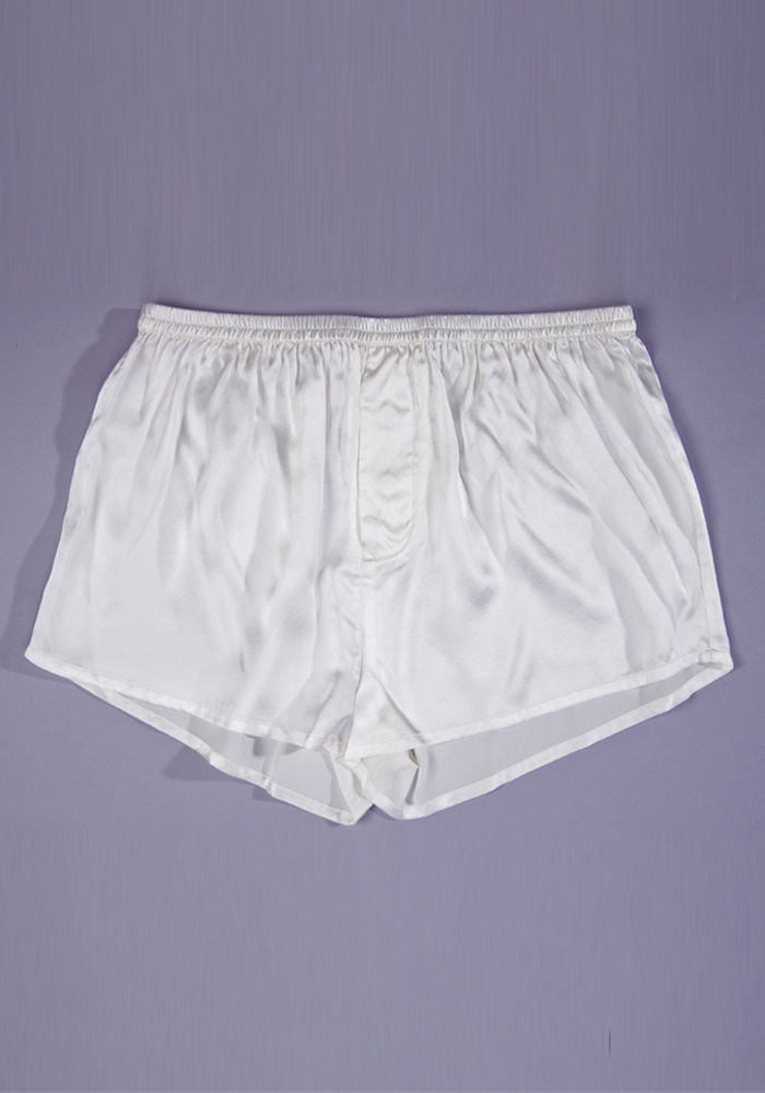 Mit den Jahren ist auch die Auswahl für Herren-Unterwäsche immer größer geworden. Boxershorts und Slips haben Gesellschaft bekommen von engen Retro-Pants und weiteren, aber kurz gehaltenen Shorts. Für letzteres Design ist auch diese schwarze Herren-Unterhose aus Seide ein gutes Beispiel. Sie sitzt weit wie eine Boxershorts, ist aber dennoch kürzer geschnitten. So gewähren die Shorts viel Bewegungsfreiheit, ohne unter engerer Oberbekleidung zu stören. So schlicht-elegant wie die gerade Schnittform ist auch die Farbe der Unterhose: Seidiges Schwarz umfüllt das männliche Gesäß, das Material verleiht den Shorts dabei ein leichtes Schimmern. Gefertigt ist diese Herren-Unterhose nämlich aus reiner Frühlingsseide. Ein echter Naturstoff, der angenehm auch auf empfindlicher Haut ist. Die Beinansätze sind leicht schräg und auf der Außenseite kürzer geschnitten, was den Shorts einen sportlichen Look verleiht. Der Eingriff auf der Vorderseite ist elegant verdeckt und fällt auf den ersten Blick nicht auf. In sechs Konfektionsgrößen von XS bis XXL erhältlich, ist diese schwarze Seiden-Unterhose eine gute Wahl für Herren jeder Statur.