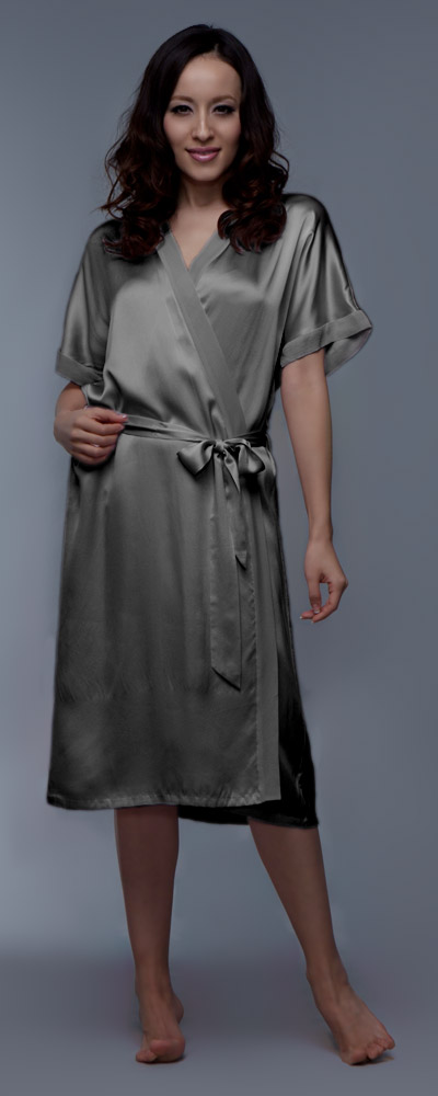 Sonntagmorgen, der Kaffee duftet, die Brötchen sind frisch – in diesen entspannten Stunden möchte frau sich gern in etwas Bequemes kleiden. Morgenmäntel & Kimonos wirken, sofern sie hochwertig verarbeitet sind, leger und attraktiv. Bestes Beispiel dafür ist diese schöne Variante des klassischen Morgenrocks. Hauchzart schmiegt sich der feine Seidenkrepp an den Körper und fällt weich fließend um die weiblichen Kurven. Verziert ist der Morgenrock für Damen mit einer Borte aus transparenter Georgette, die sich über die gesamte Länge und an den Ärmeln entlang zieht.