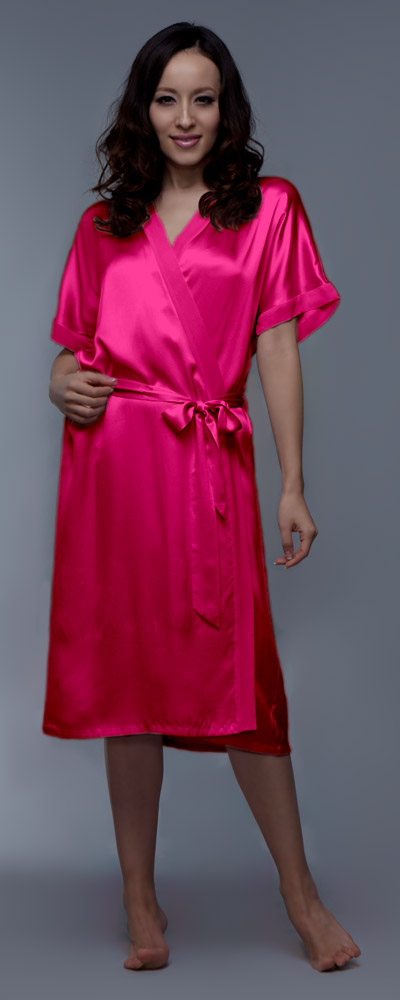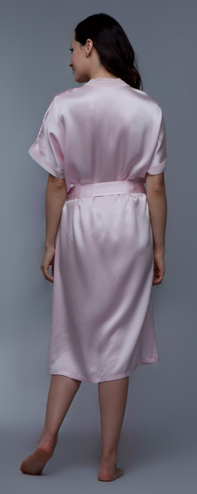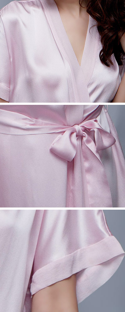Locker wird der Morgenrock aus reiner Seide mit einem Hüftband zusammengehalten. Alle Nähte sind hochwertig verarbeitet, sodass Damen lange Zeit Freude an diesem schönen Stück haben werden. Die reine Frühlingsseide hat die Exportgüteklasse A und ein Seidengewicht von 19momme. Sollte das zarte Hellpink nicht dem persönlichen Geschmack entsprechen, können Damen den Bademantel auch noch in anderen Farben wählen, zum Beispiel in Marineblau oder in Dunkelrot. Sechs Konfektionsgrößen stehen außerdem zur Verfügung.